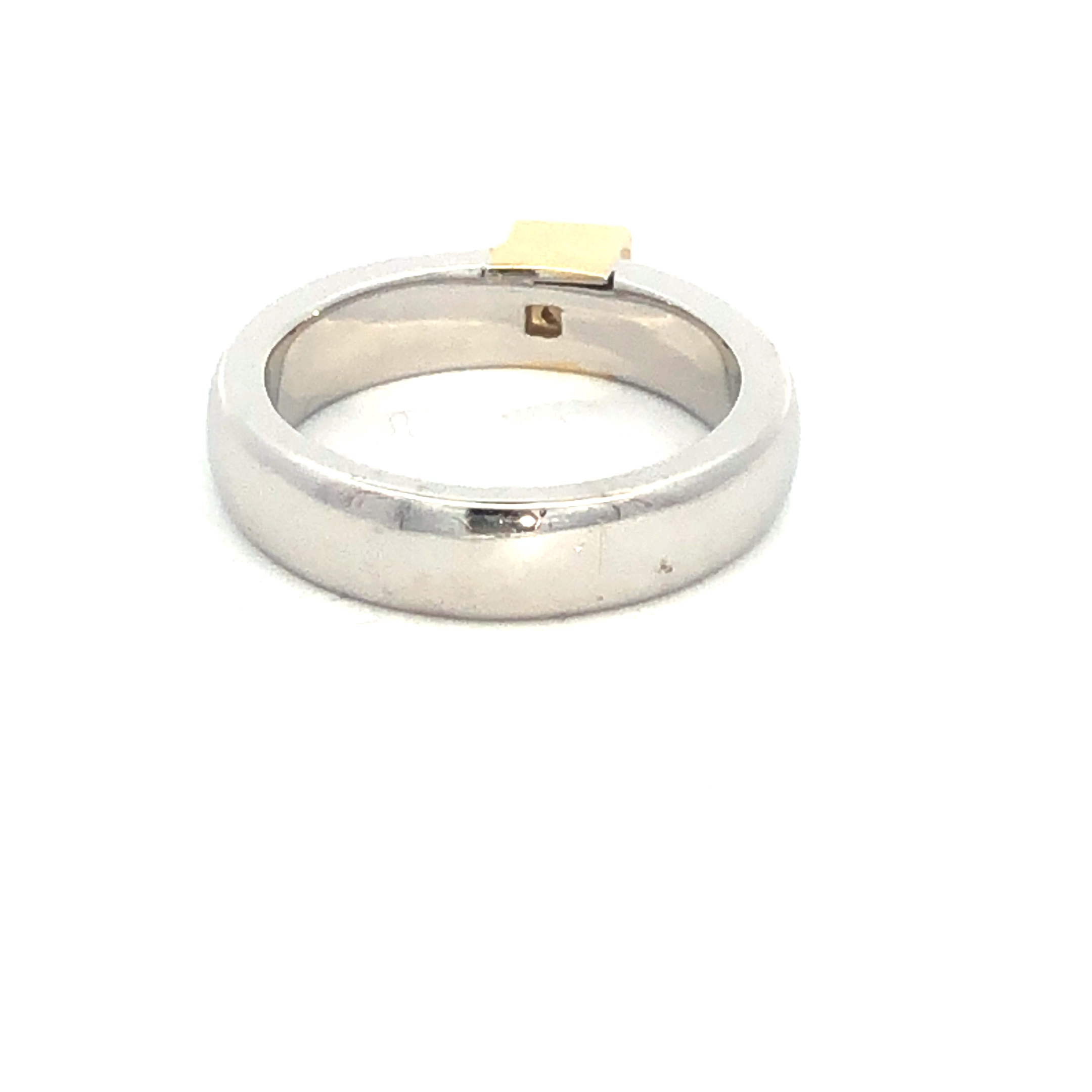 This ring is a perfect fusion of contemporary design and timeless elegance. Its two-tone style is both modern and sophisticated, while the sparkling princess-cut diamond adds a touch of classic beauty. It’s a versatile piece that can be dressed up or down, making it a valuable addition to any jewelry collection.